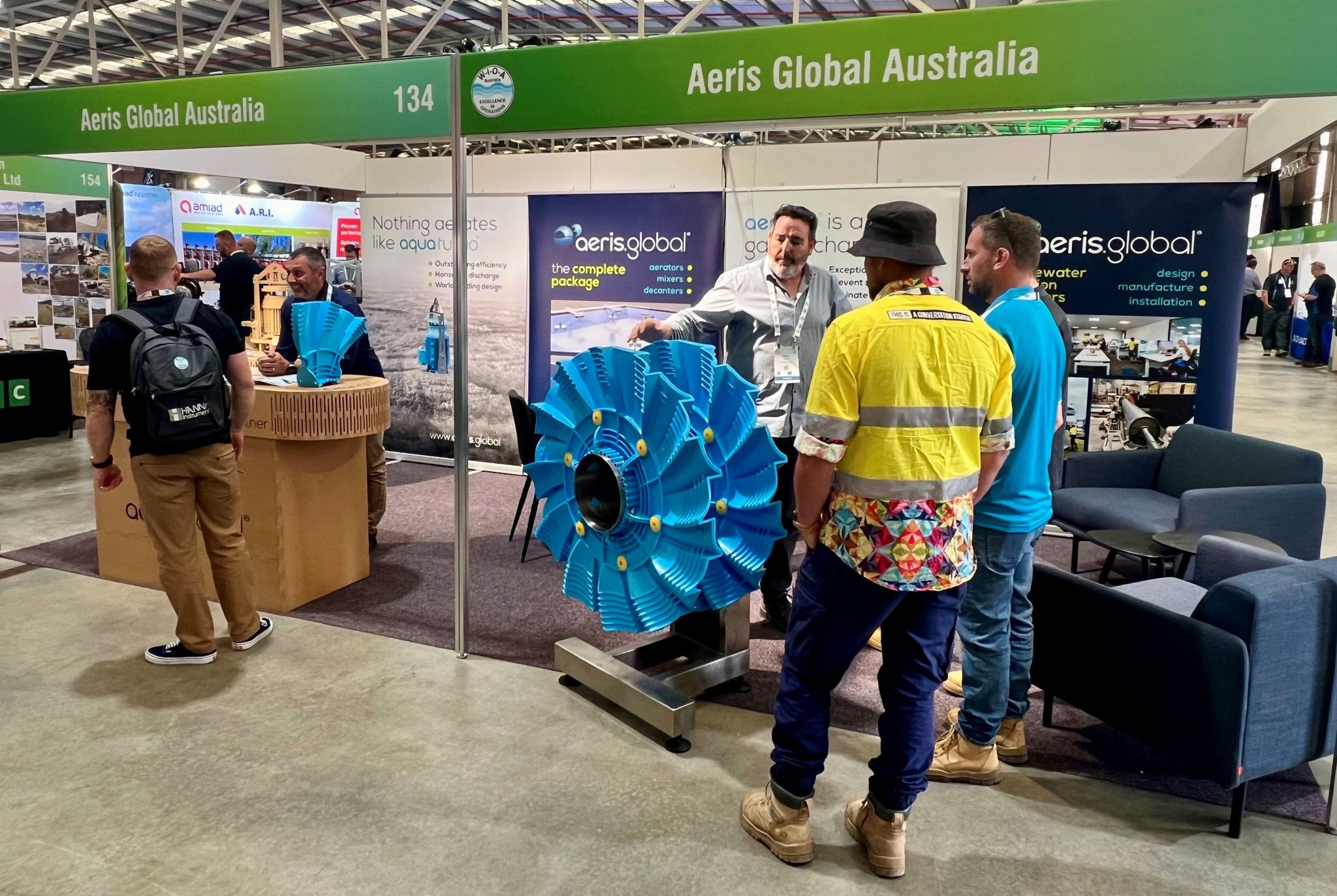 The aerdisc® Directional Aerator; aquaturbo® AER-AS Floating Surface Aerator and otterbuoy® Pond-friendly sensor float all proved to be popular drawcards on the Aeris Global stand