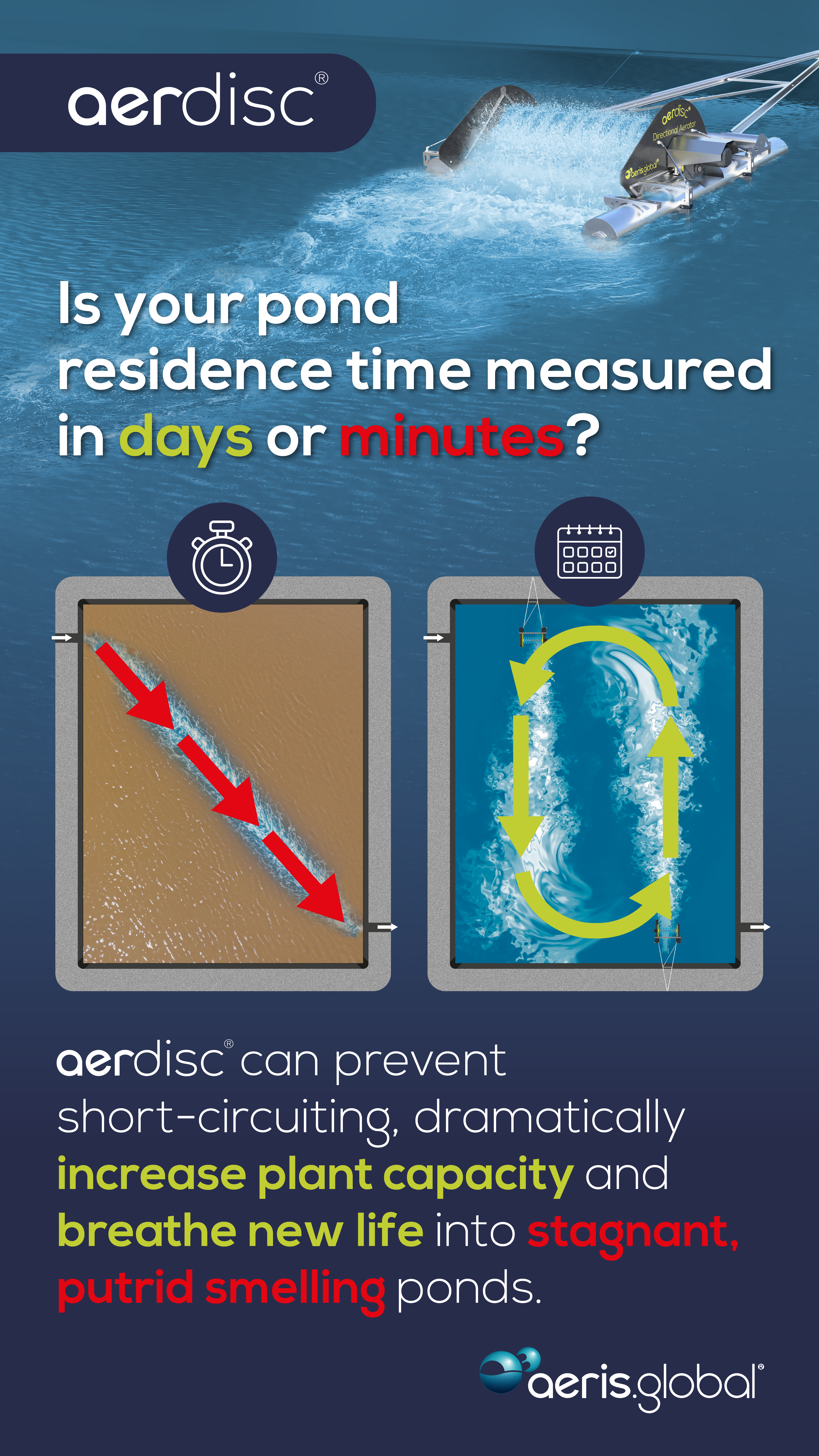 The revolutionary aerdisc® Directional Aerator is proving to be a lifesaver for oxygen starved, lifeless wastewater treatment ponds. aerdisc® breathes life into stagnant, putrid smelling